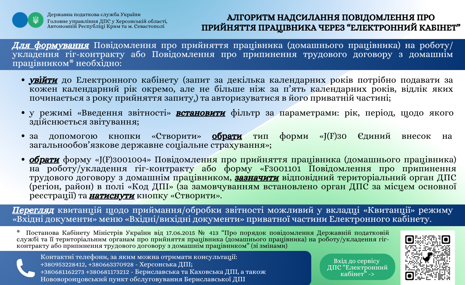 Алгоритм надсилання повідомлення про прийняття працівника через е-кабінет