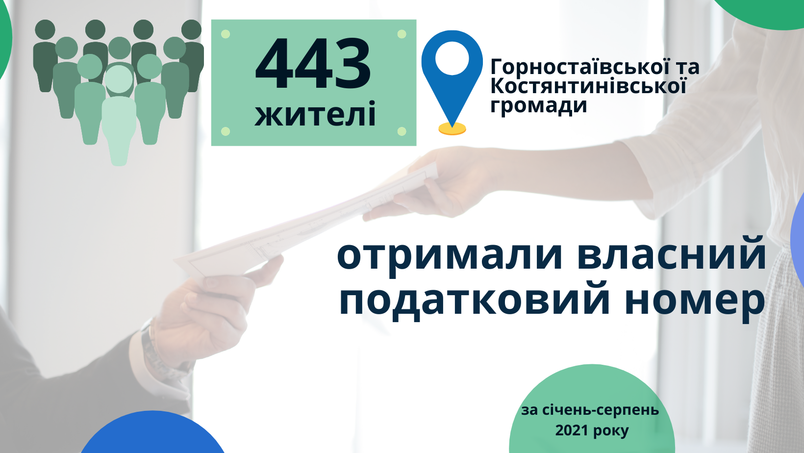 За січень – серпень 2021 року більш як 400 громадян Горностаївської та Костянтинівської громад отримали власний податковий номер