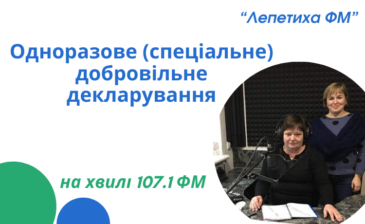 Шановні платники податків, Головне управління ДПС у Херсонській області, Автономній Республіці Крим та м. Севастополі повідомляє, що начальниця Великолепетиської ДПІ Світлана Маленда інформуватиме громадян щодо одноразового добровільного декларування активів громадян.