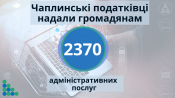 Фахівці Чаплинської ДПІ Головного управління ДПС у Херсонській області, Автономній Республіці Крим та м. Севастополі за січень – серпень 2021 року надали 2370 адміністративних послуг. Про це повідомила начальниця податкової інспекції Оксана Добрянська.