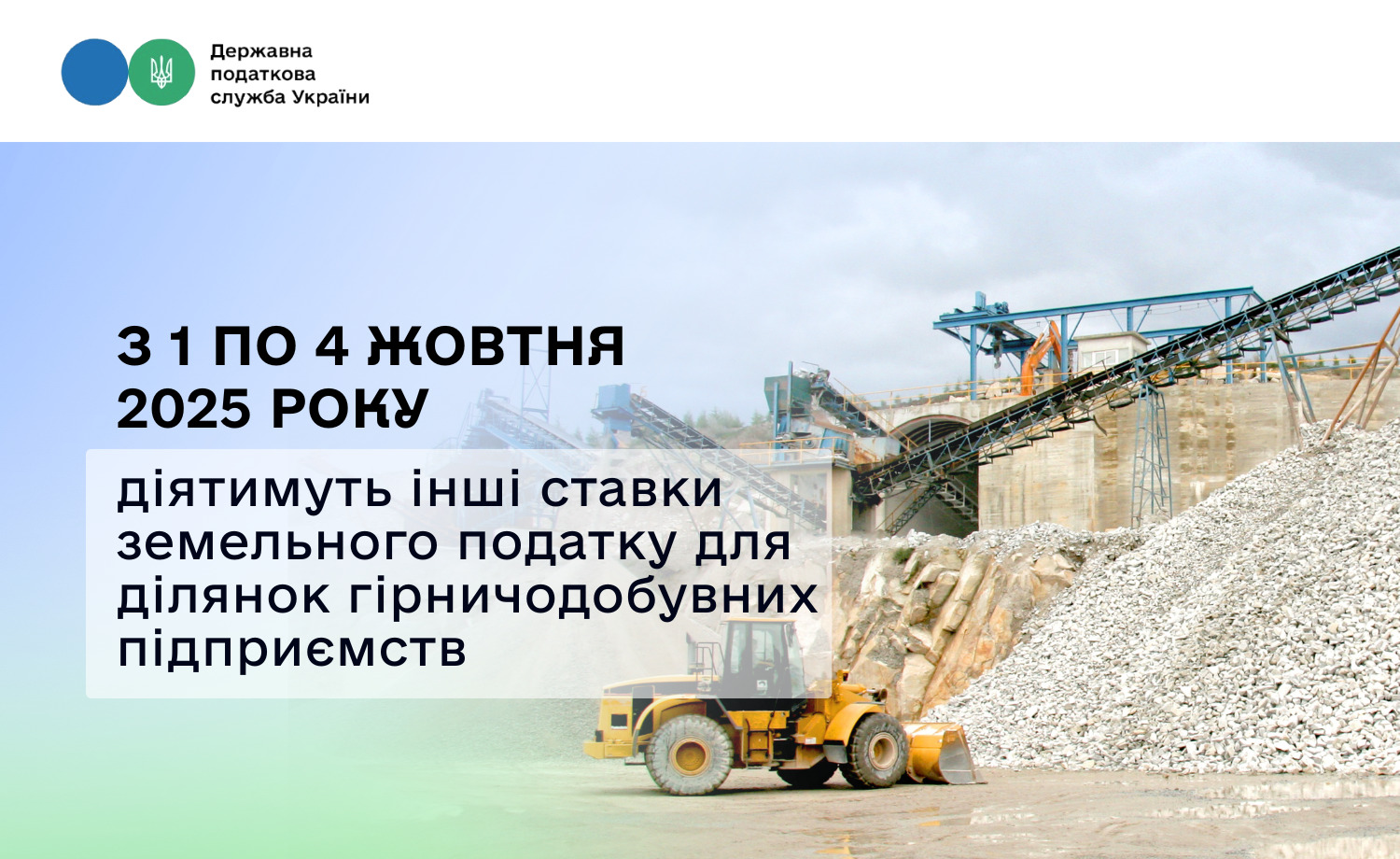 З 1 по 4 жовтня 2025 року діятимуть інші ставки земельного податку для ділянок гірничодобувних підприємств
