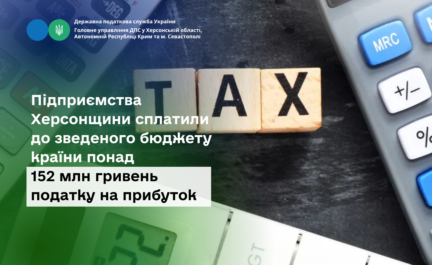 У січні – вересні 2025 року підприємствами Херсонщини перераховано до бюджетів усіх рівнів 152,3 млн гривень податку на прибуток.