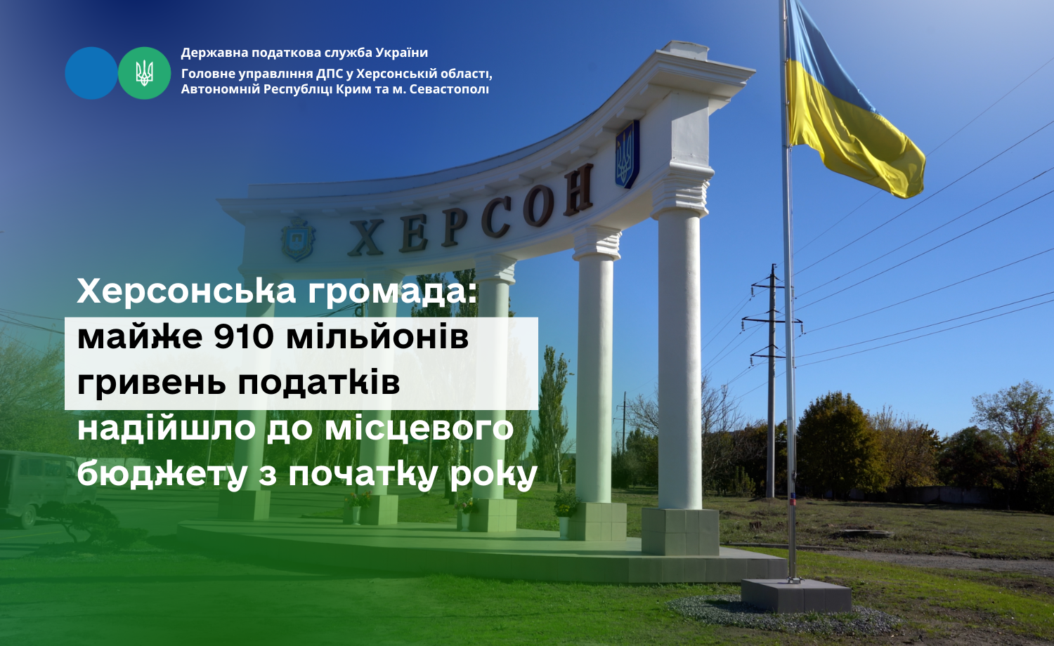 За інформацією управління економічного аналізу Головного управління ДПС у Херсонській області, Автономній Республіці Крим та м. Севастополі, за дев’ять місяців 2025 року до бюджету Херсонської міської територіальної громади надійшло 909,9 млн гривень податкових платежів.