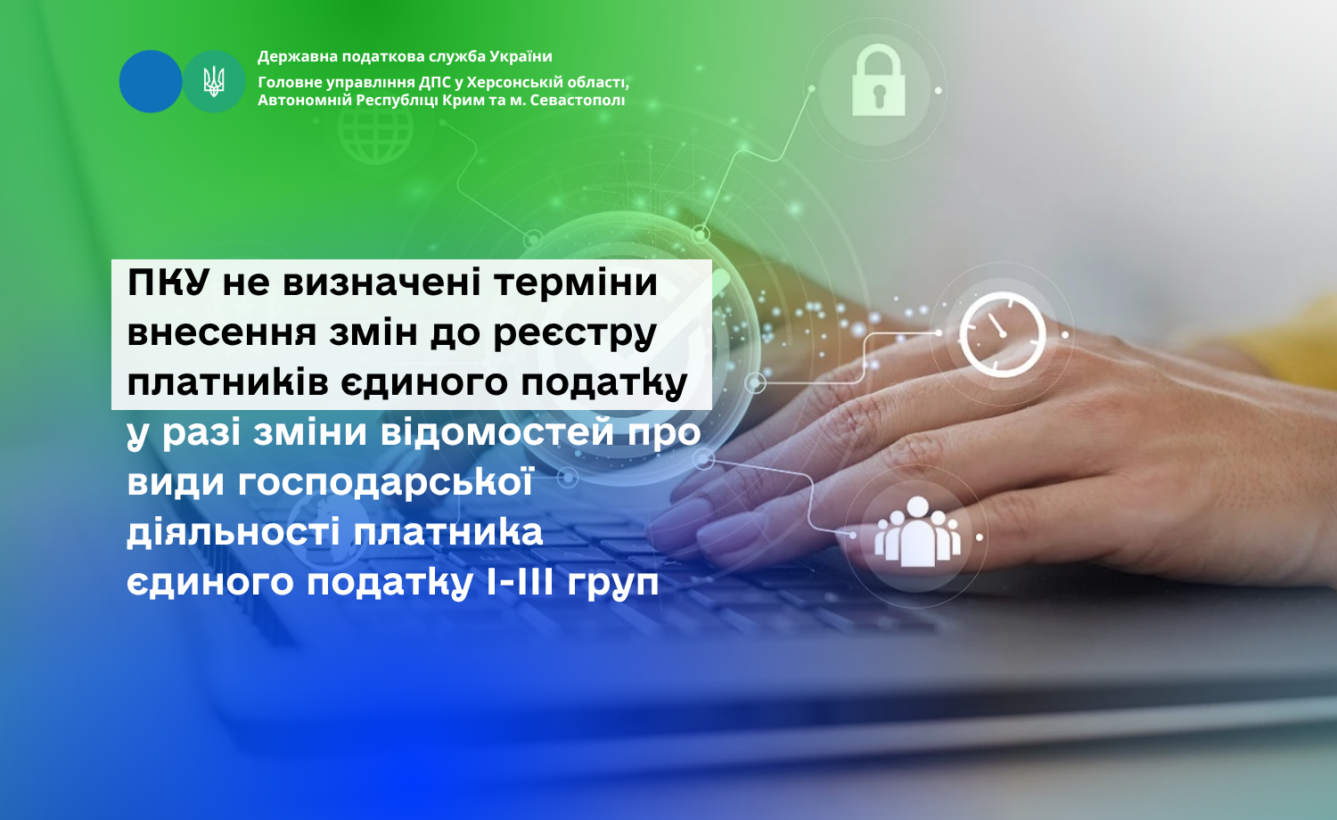 Головне управління ДПС у Херсонській області, Автономній Республіці Крим та м. Севастополі нагадує, що до реєстру платників єдиного податку вносяться, зокрема, відомості про види господарської діяльності платника єдиного податку (крім платників єдиного податку третьої групи – електронних резидентів (е-резидентів). Це визначено п.п. 8 п. 299.7 ст. 299 Податкового кодексу України (далі – ПКУ).