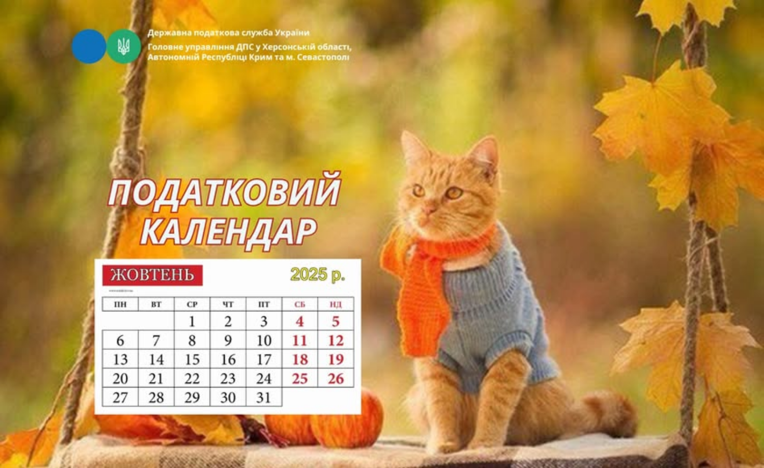 Головне управління ДПС у Херсонській області, Автономній Республіці Крим та м. Севастополі нагадує, що середа, 29 жовтня 2025 року є: