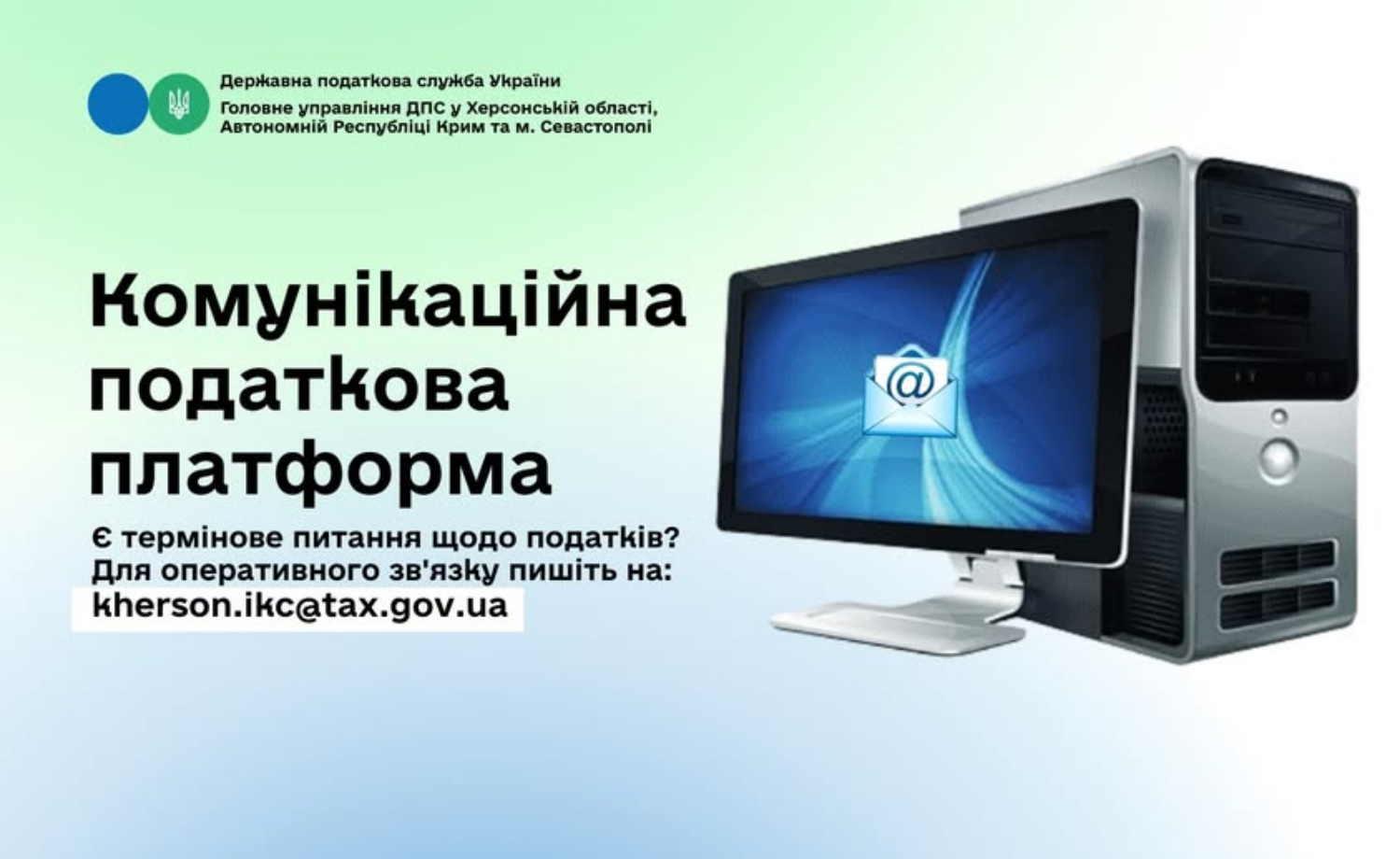 Звернення від представників інститутів громадянського суспільства та бізнес-асоціацій приймаються на Комунікаційну податкову платформу за електронною адресою: kherson.ikc@tax.gov.ua.