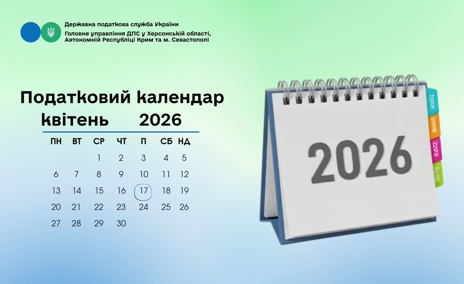 П’ятниця, 17 квітня 2026 року останній день сплати: