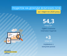У першому півріччі 2020 року платники податків сплатили 54,3 млрд грн податку на доходи фізичних осіб. У 2019 році цей показник складав 51,2 млрд грн. Тобто порівняно з минулим роком цьогорічний показник більше на 3 млрд грн. Про це Голова Державної податкової служби України Олексій Любченко розповів в інтерв’ю виданню «Цензор.НЕТ».