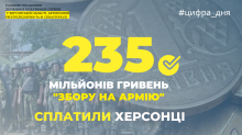 За 9 місяців 2020 року платники податків Херсонської області перерахували до державного бюджету на підтримку української армії 234,8 млн гривень військового збору з приростом до минулорічних надходжень 16,3 млн гривень. Інформацію повідомили спеціалісти управління податкового адміністрування Головного управління ДПС у Херсонській області, Автономній Республіці Крим та м. Севастополі.