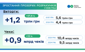 Позитивна тенденція і в кількості розрахункових документів. У 2024 році було сформовано 9,5 млрд чеків, а вже у 2025 році їх кількість зросла до 10,4 млрд одиниць. Приріст склав 921,07 млн чеків або 10 %.