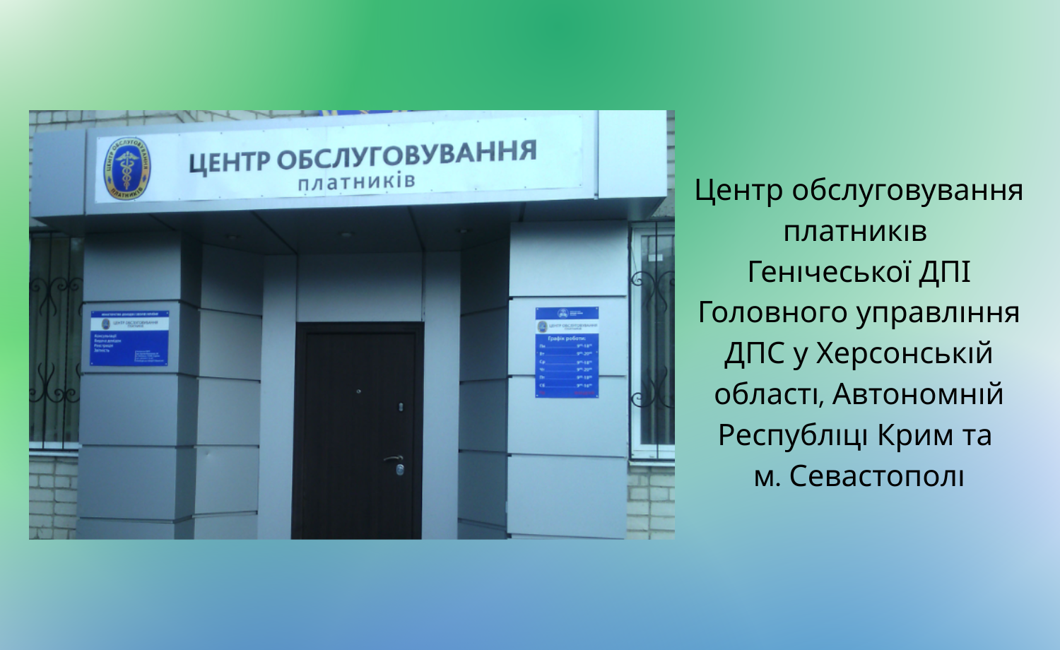 Центр обслуговування платників Генічеської ДПІ Головного управління ДПС у Херсонській області, Автономній Республіці Крим та м. Севастополі